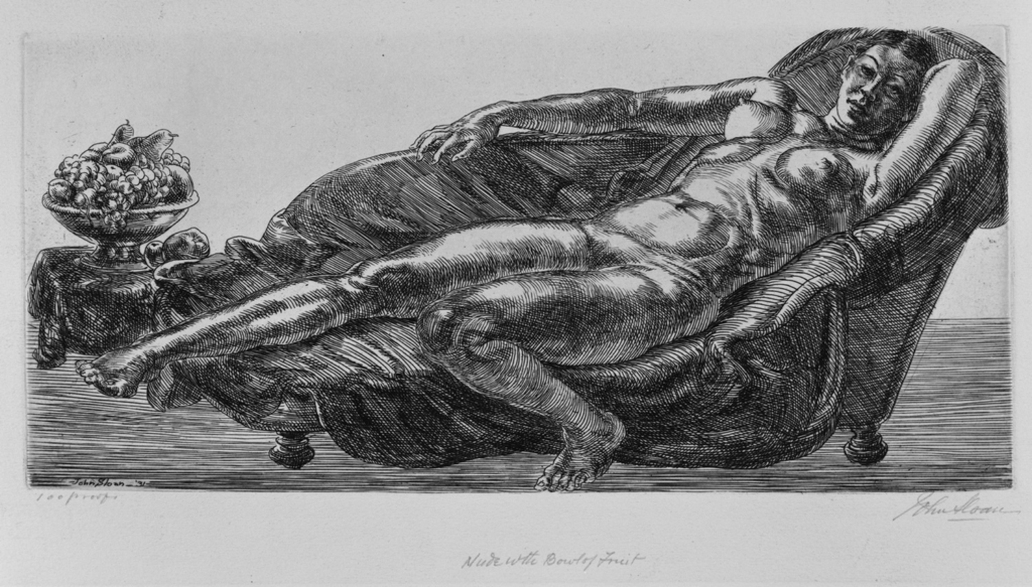 | Inscriptions | Signed and dated, lower left: John Sloan ‘31; signed in pencil, lower right margin: John Sloan; inscribed in pencil, lower left margin: 100 proofs; bottom margin: Nude with Bowl of Fruits |