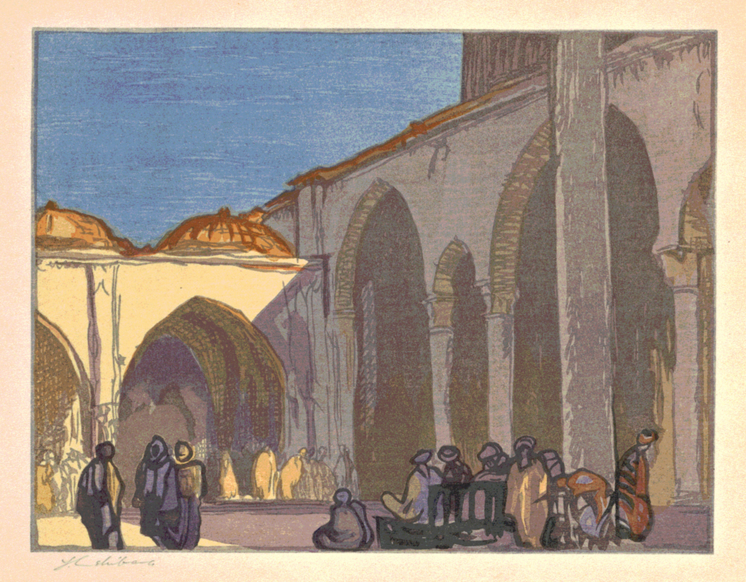 『木版画十選』:モスクの中庭 <Ten Woodcuts>: The Court of the Mosque of Memory