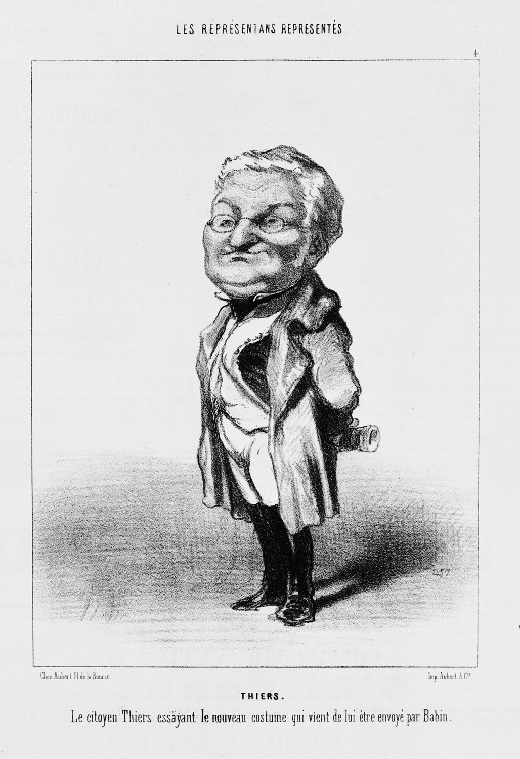 『当世代議士鑑』:(4)ティエール 市民ティエールはババンから送られてきた新しい衣服を試着中。 <The Representatives Represented>: (4) Adolphe Thiers