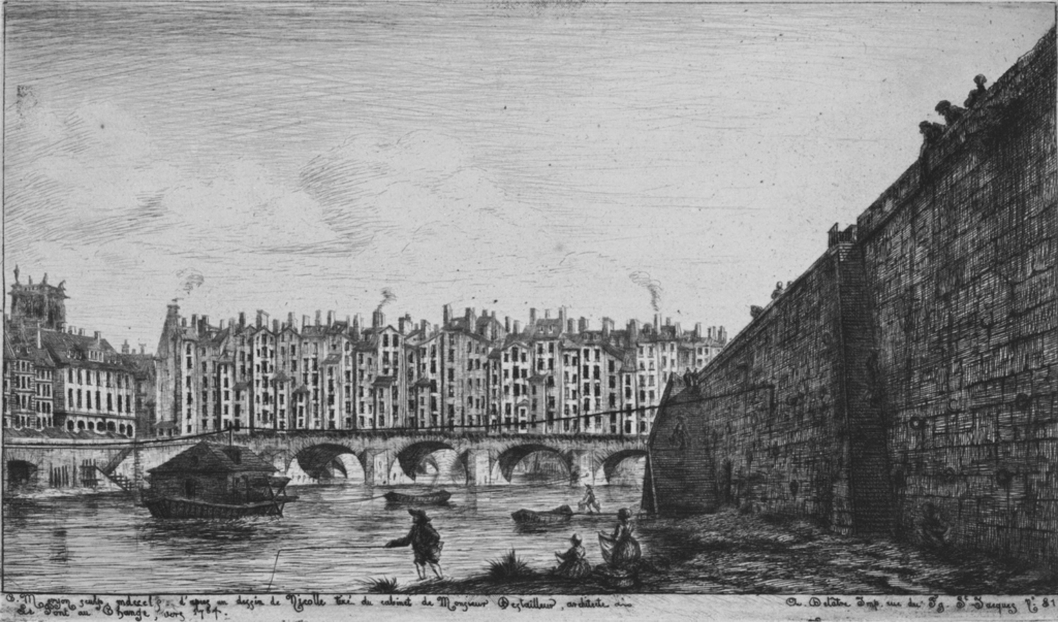| Inscriptions | C. Meryon sculp. Mdccclv d' après un dessin de Nicolle tiré du cabinet de Monsieur Destailleur architecte ano/ Le Pont au Change, vers 1784. / A. Delatre Imp. rue du Fg. St Jacques NO 81 |