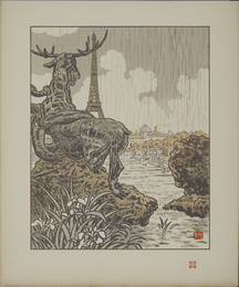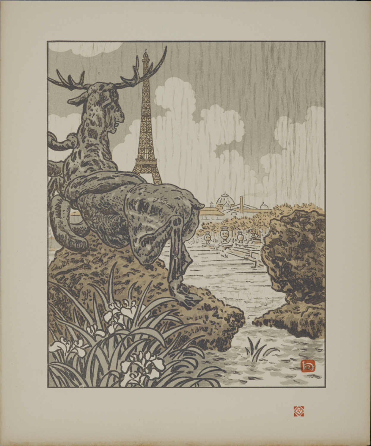 版画集『エッフェル塔三十六景』:フレミエの大鹿の背より(トロカデロ) <Thirty-Six Views of the Eiffel Tower (Les Trente-Six Vues de la Tour Eiffel)>: Behind Frémiet's Elk (Trocadéro)